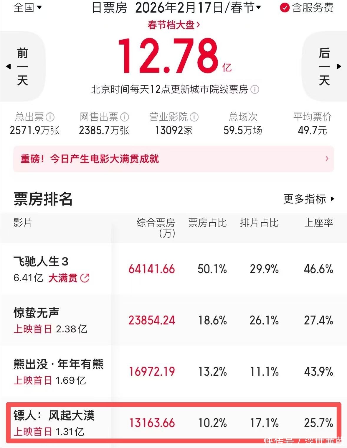 排片率刚过18%,首日票房甚至未能闯入前四行列。
