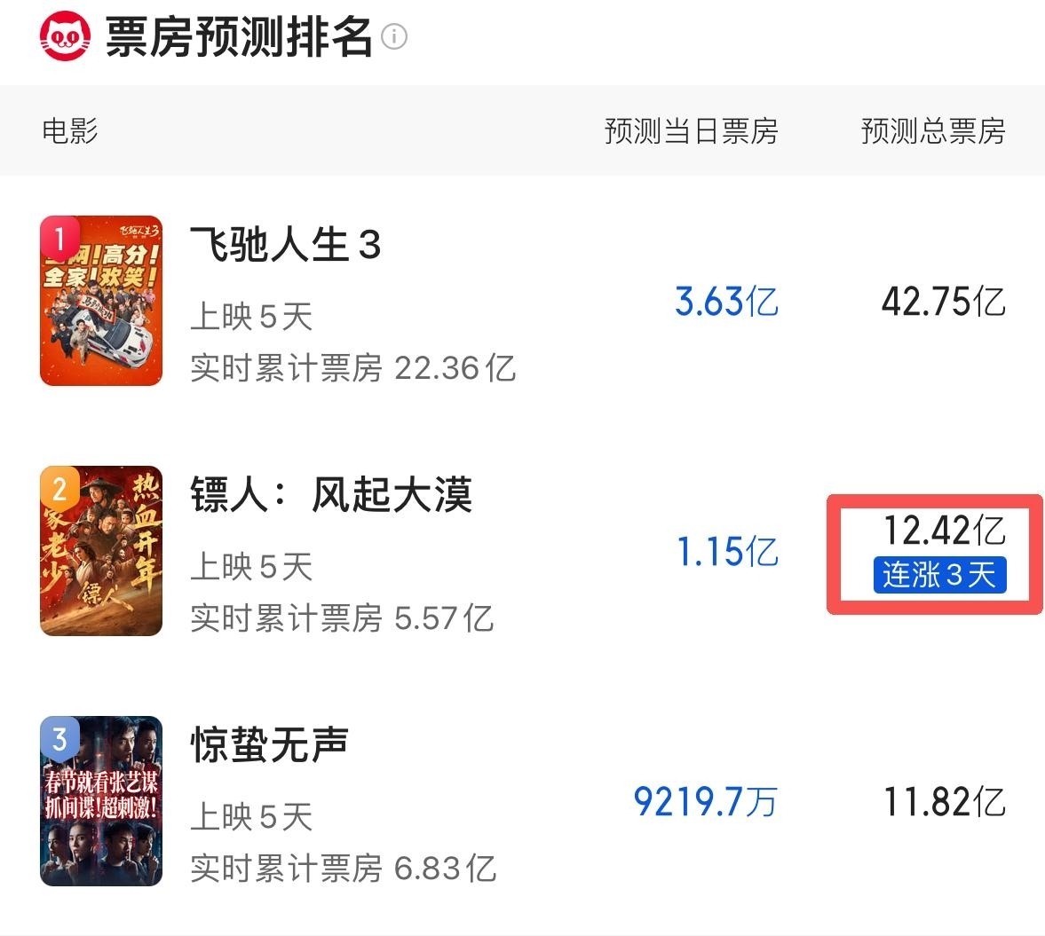 紧随春节档领头羊《飞驰人生3》之后;
