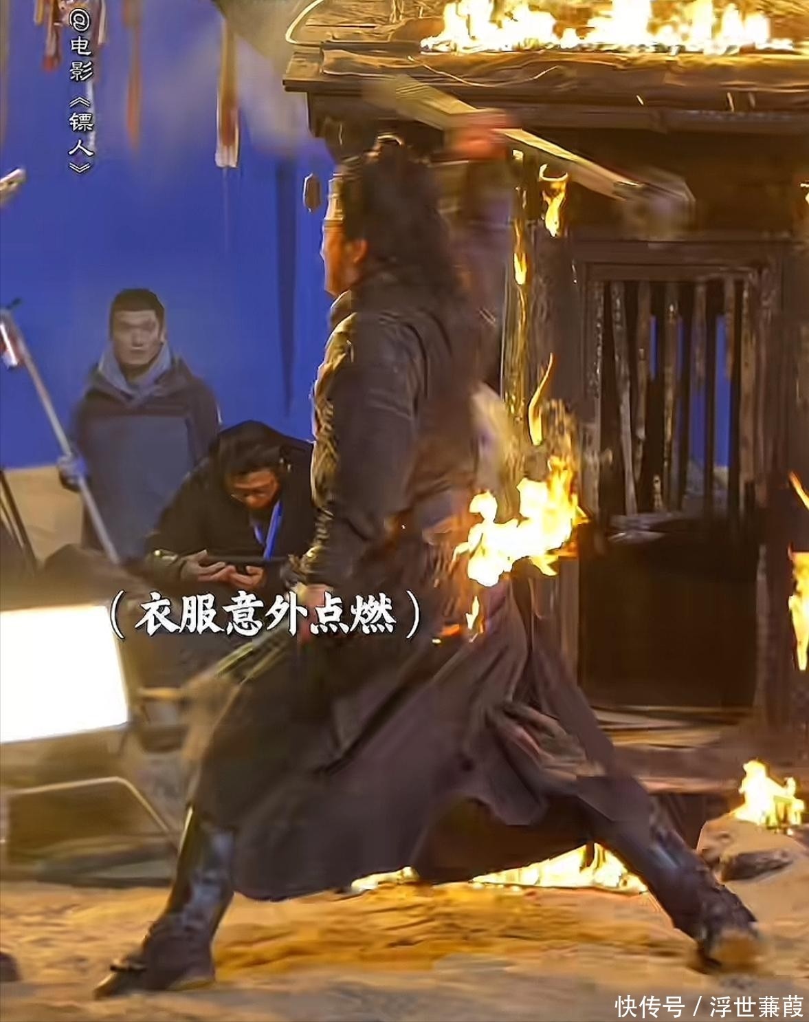 次日裹着湿衣冲进火场拍摄爆破戏,衣袖瞬间卷曲碳化;