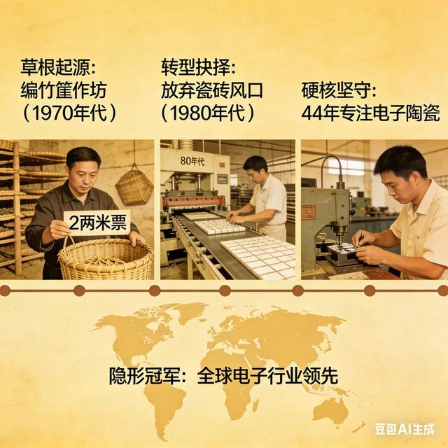 它出身最草根——前身是编竹筐的作坊,工人靠2两米票度日;它性子最倔——80年代瓷砖风口遍地黄金,它偏要卖掉生产线,转头去啃没人看好的电子陶瓷;它也最硬核——默默熬了44年,不靠炒作、不玩资本,硬是把一捧瓷土,做成了全球电子行业的“隐形冠军”。