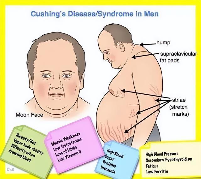 另外,如果突然出现满月脸、向心性肥胖、紫纹和高血糖等一系列症候群,则可能是ACTH腺瘤引起的Cushing综合征。