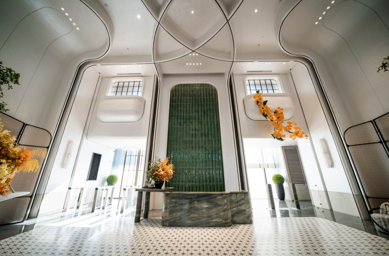 入户大堂,装饰满洲窗、岭南花艺等元素,充满岭南骑楼氛围。项目相关负责人特别介绍,入户大堂的背景墙,为了达到更好的质感,由手工烧制的276块陶瓷拼合而成。