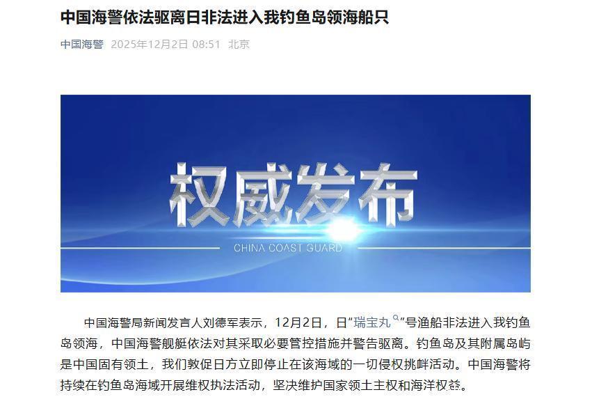 事件发生后几个小时,中方就通过“中国海警”微信公众号发布通报,明确指出“瑞宝丸”及巡逻艇非法进入中国钓鱼岛领海,并依法进行警告驱离。
