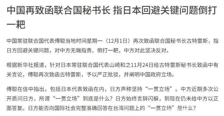 不仅如此,在北京时间同一天,中国也立即向秘书长古特雷斯递交函件,对日本的不当行为进行指责,并重申中国的领土主权不可侵犯。