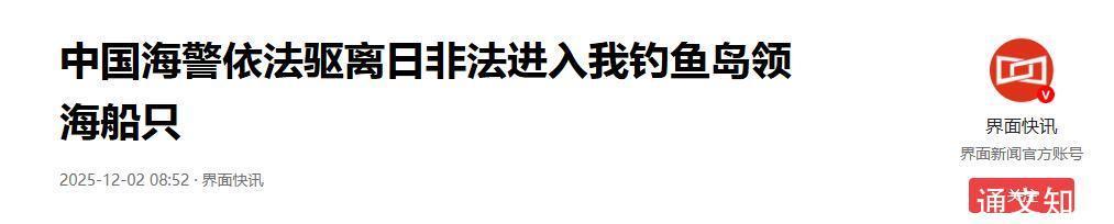 2025-12-02 08:52·界面快讯 中国海警依法驱离日非法进入我钓鱼岛领海船只