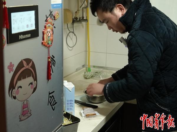 1月25日,武汉,熊天琪在给母亲制作流食。