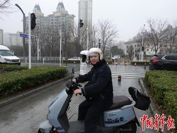 1月25日,武汉,熊天琪在当天发生疑似“碰瓷”事故的路口前。